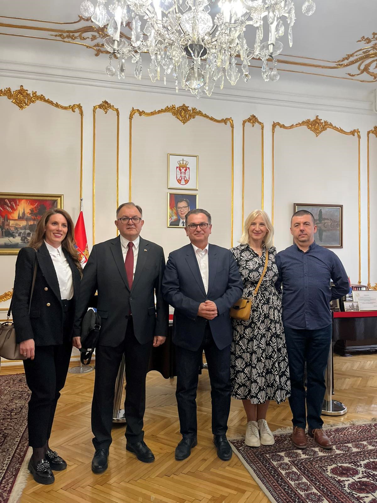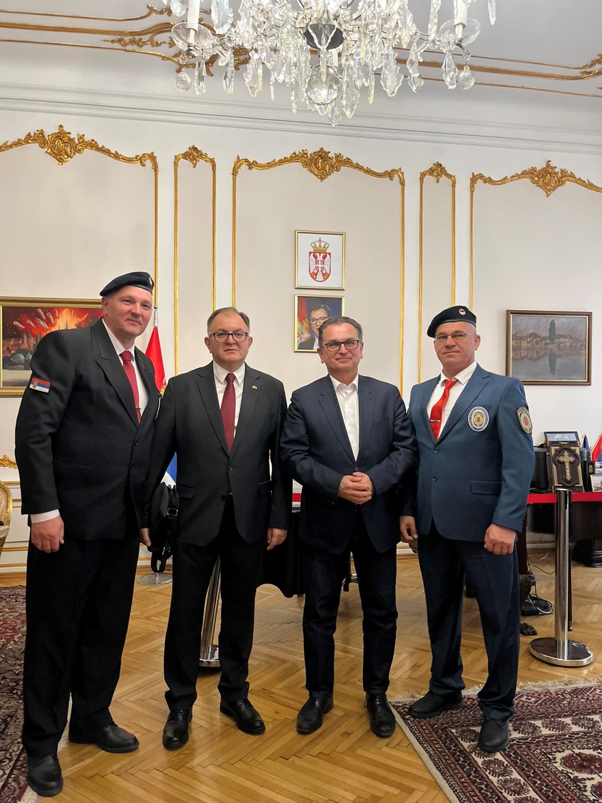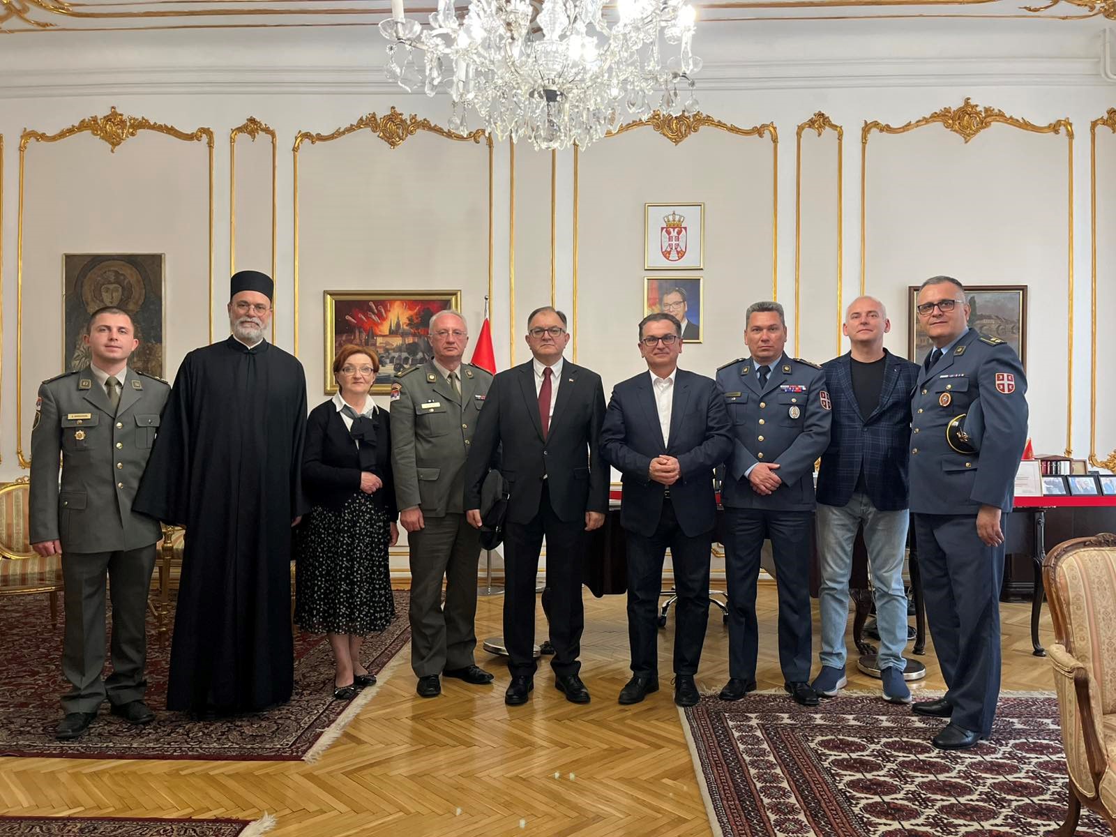 Ambasada Republike Srbije u Pragu organizovala je, 26. aprila 2026. godine, prijem za delegaciju Ministarstva za rad, zapošljavanje, boračka i socijalna pitanja, članove Odbora Vlade Republike Srbije za negovanje tradicija oslobodilačkih ratova Srbije, predstavnike Ministarstva odbrane i Vojske Srbije, kadete Vojne akademije, kao i predstavnike i studente Kriminalističko-policijskog univerziteta iz Beograda.