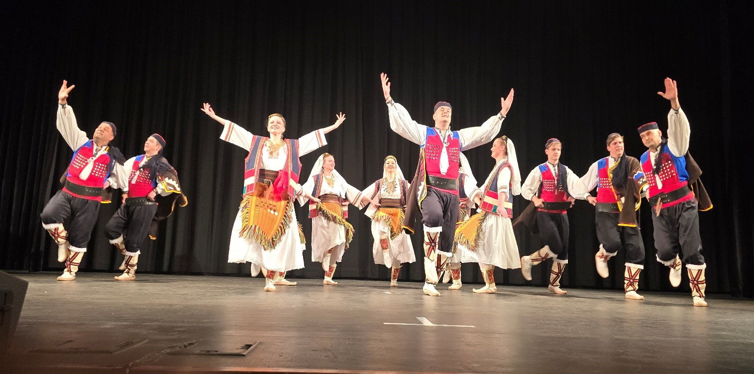 Publika je imala priliku da uživa u narodnim igrama i koreografijama sa područja Šumadije, Banata, Glamoča, Kosova i Metohije, kao i u pesmama iz različitih krajeva Srbije. Koncert je protekao u izuzetnoj atmosferi i bio je obeležen velikom energijom, posvećenošću i ljubavlju prema srpskoj tradiciji. Prvi igrački ansambl oduševio je publiku uigranošću i kvalitetom nastupa, dok su najmlađi članovi Udruženja pobrali posebne simpatije prisutnih. Svečanom koncertu prisustvovali su članovi kolektiva Ambasade Republike Srbije u Pragu.