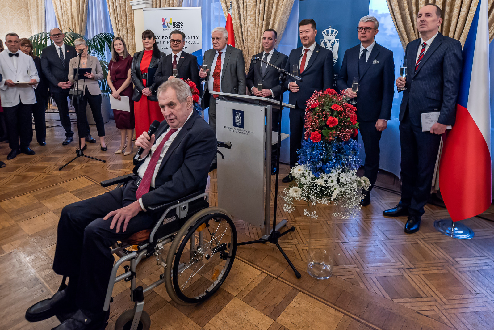 Пријему је присуствовало преко 60 амбасадора акредитованих у Чешкој Републици и државни секретар у Министарству спољних послова Републике Србије Дамјан Јовић.
